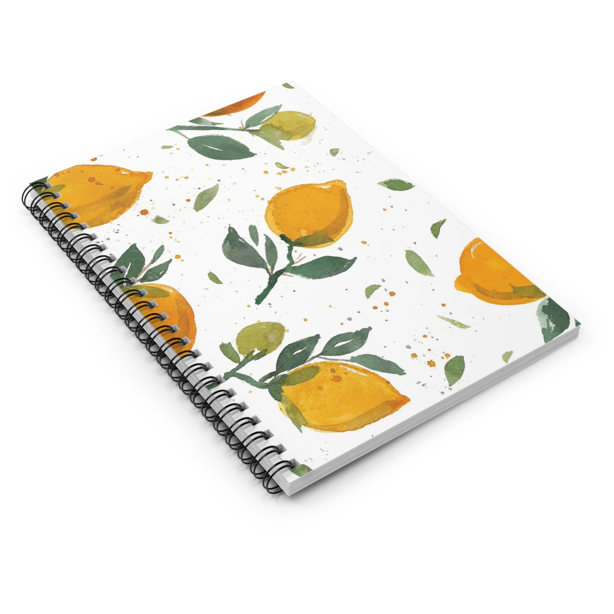 This lemon spiral notebook radiates a sunny and cheerful vibe, journaling, or sketching. Ideal for students, or artists, this notebook is grat for gifts, or back-to-school shopping. Fancy look metal spiral binding. Document pocket for added storage.  100% paper material. 6" x 8" with 118 ruled line pages