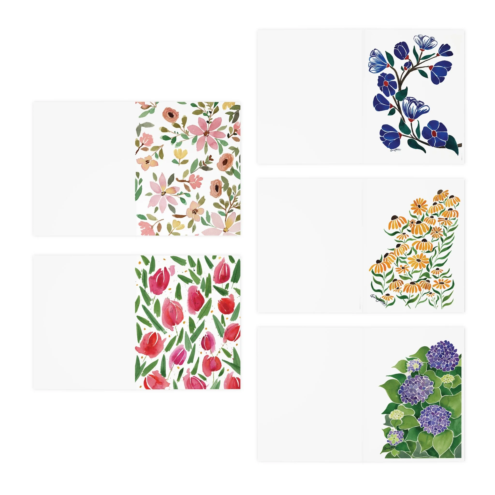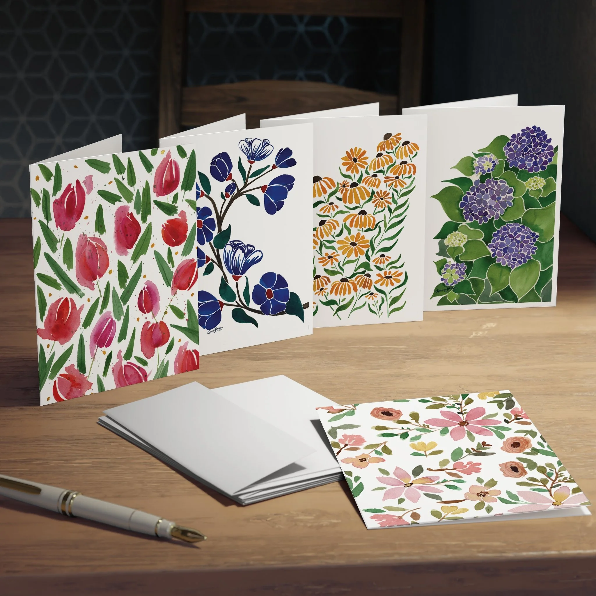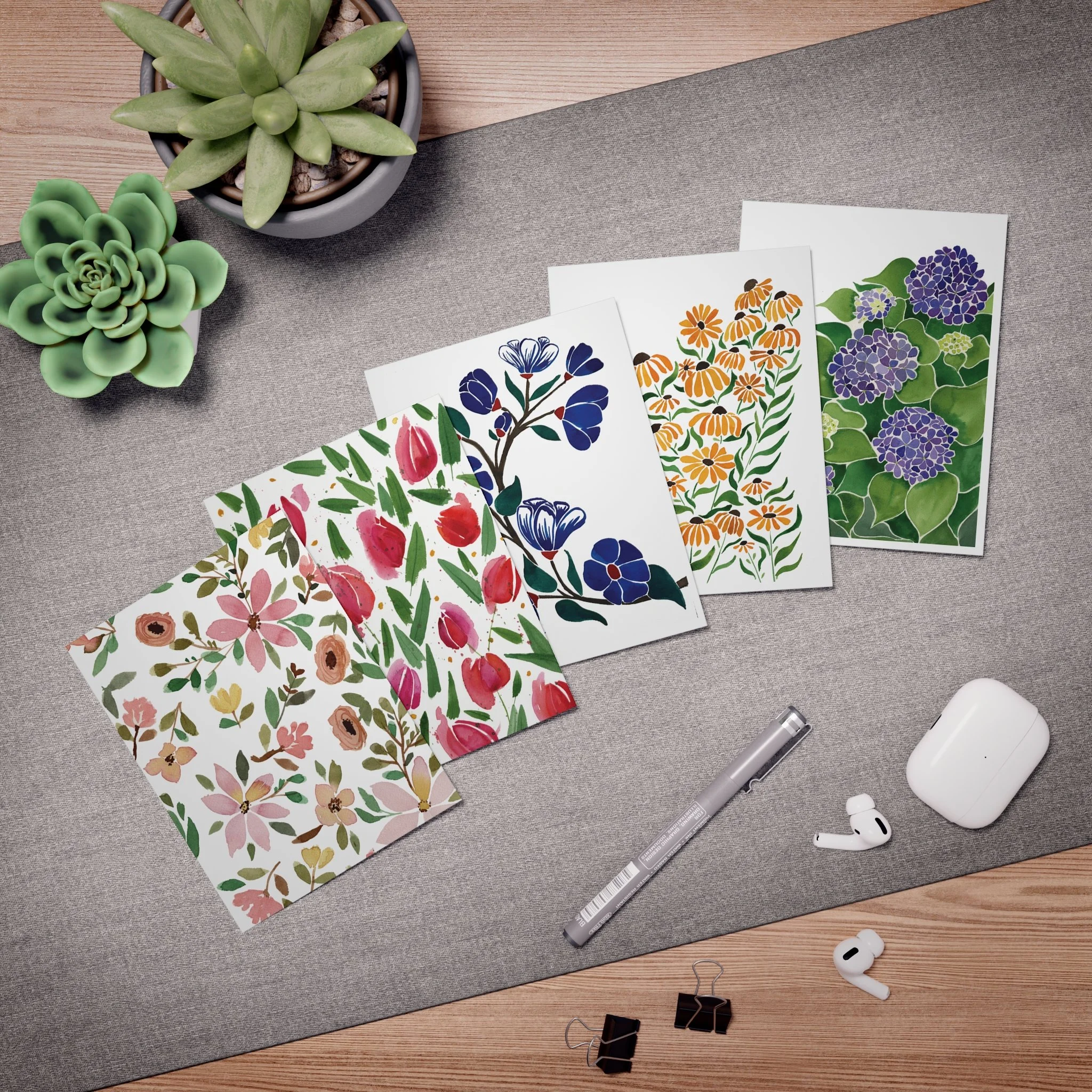 An assorted collection of my floral greeting cards. Send a cheery note to a loved one or friend. Vibrant colors. Comes with matching envelopes. Printed on high-quality uncoated paper. Size: 4.25 x 5.5