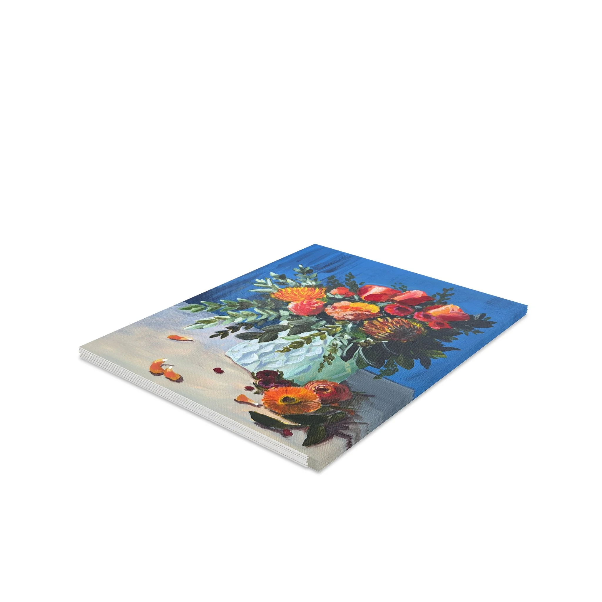 Brighten up your correspondence with these stunning greeting cards. Each card is adorned with this vibrant floral painting by Anna Johnson. Ideal for personal or professional use, these cards are perfect for any occasion. Featuring a matte finish. Cards come with a matching white envelope. Standard size of 4.25" x 5.5".