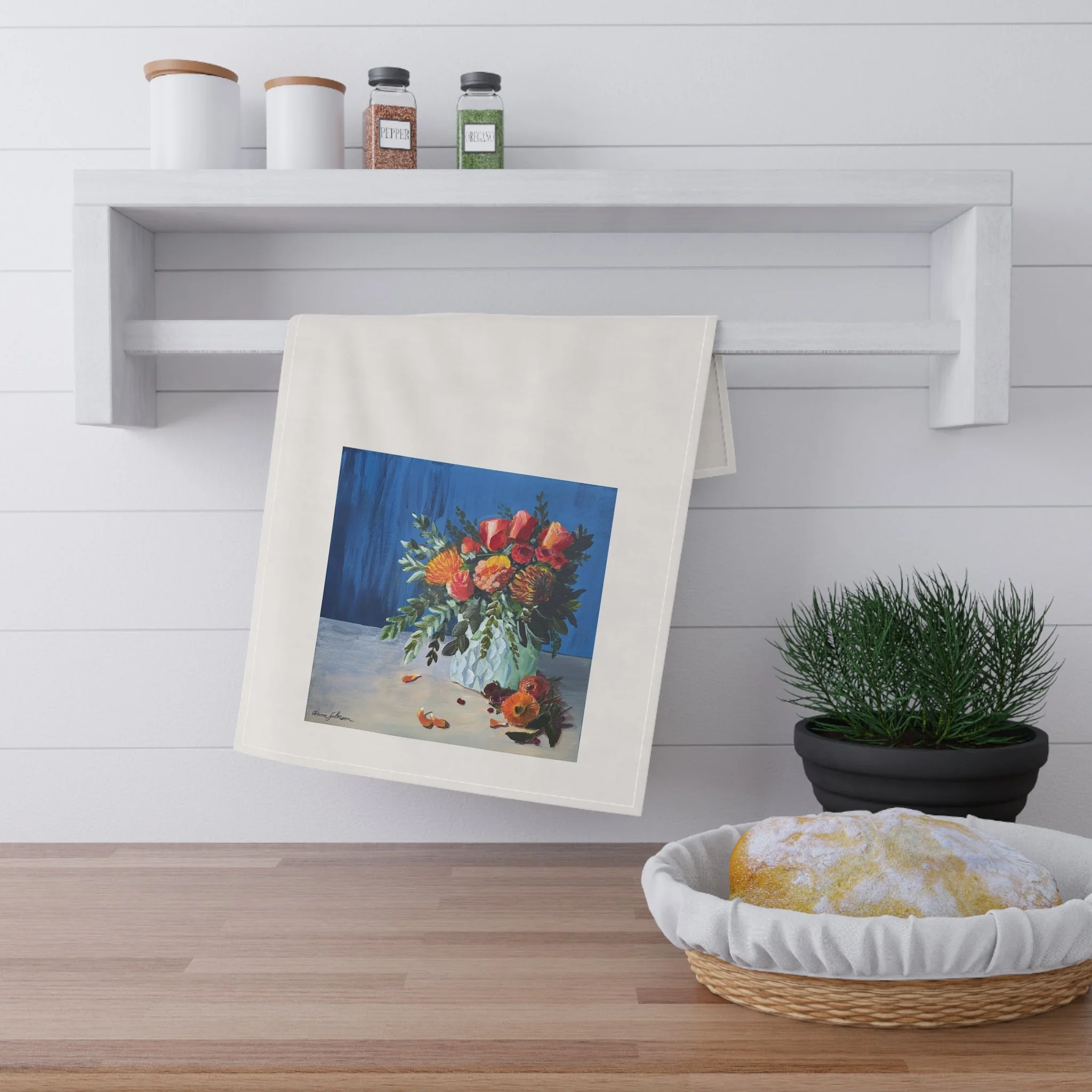 Here to add a touch of character to any kitchen. Not only does it have a stunning one-sided print, but it's also a trusty and expressive helper to the cook. One size: 18" × 30"