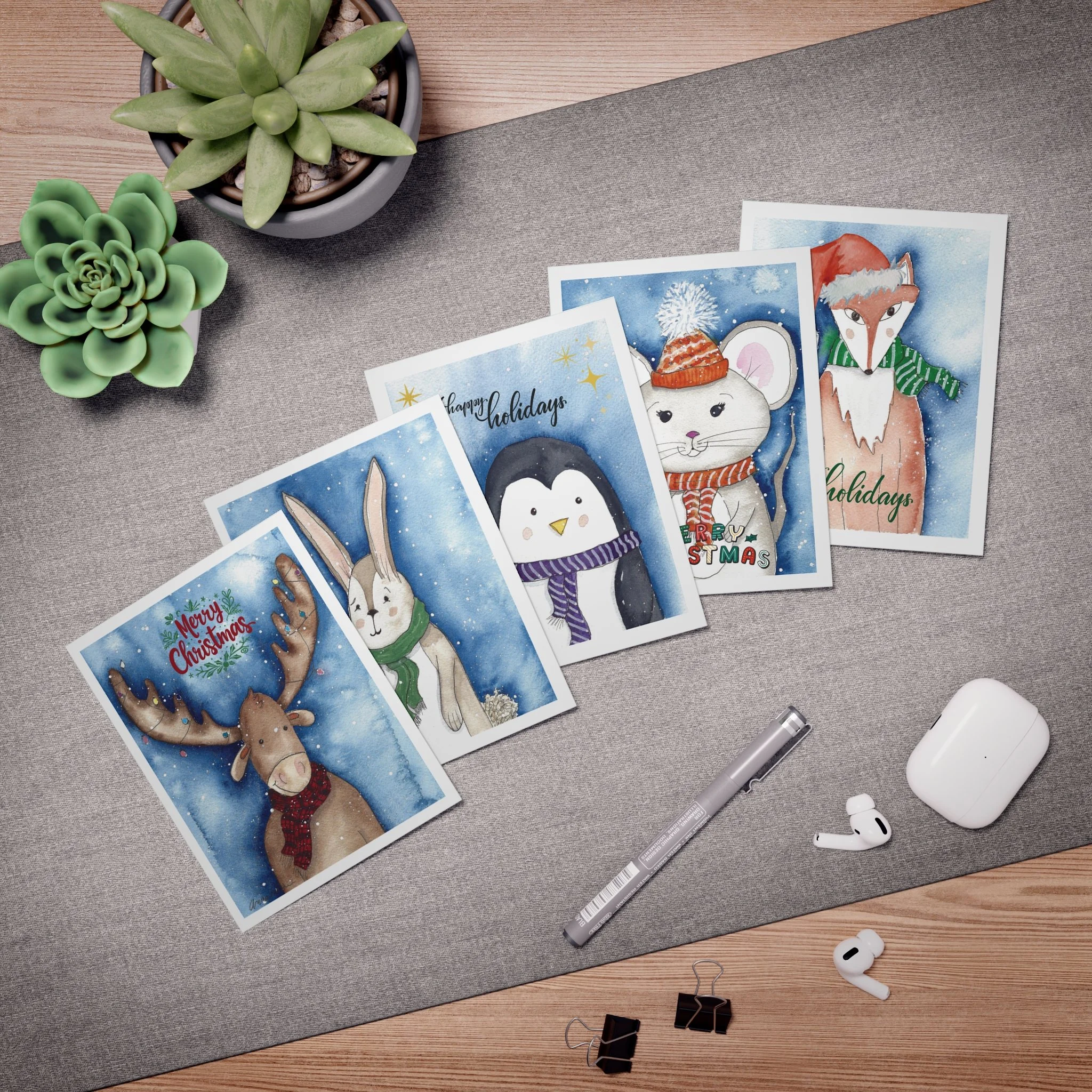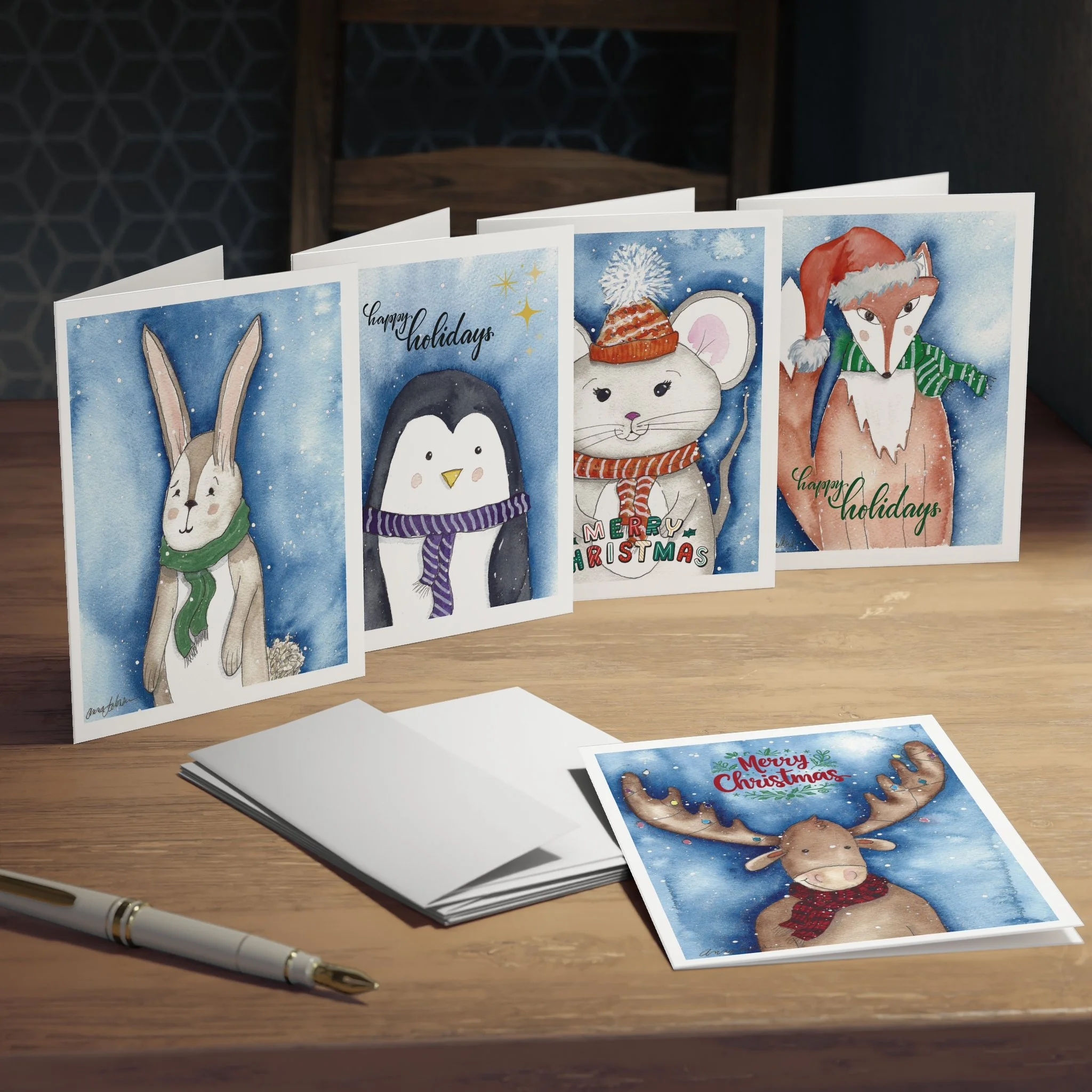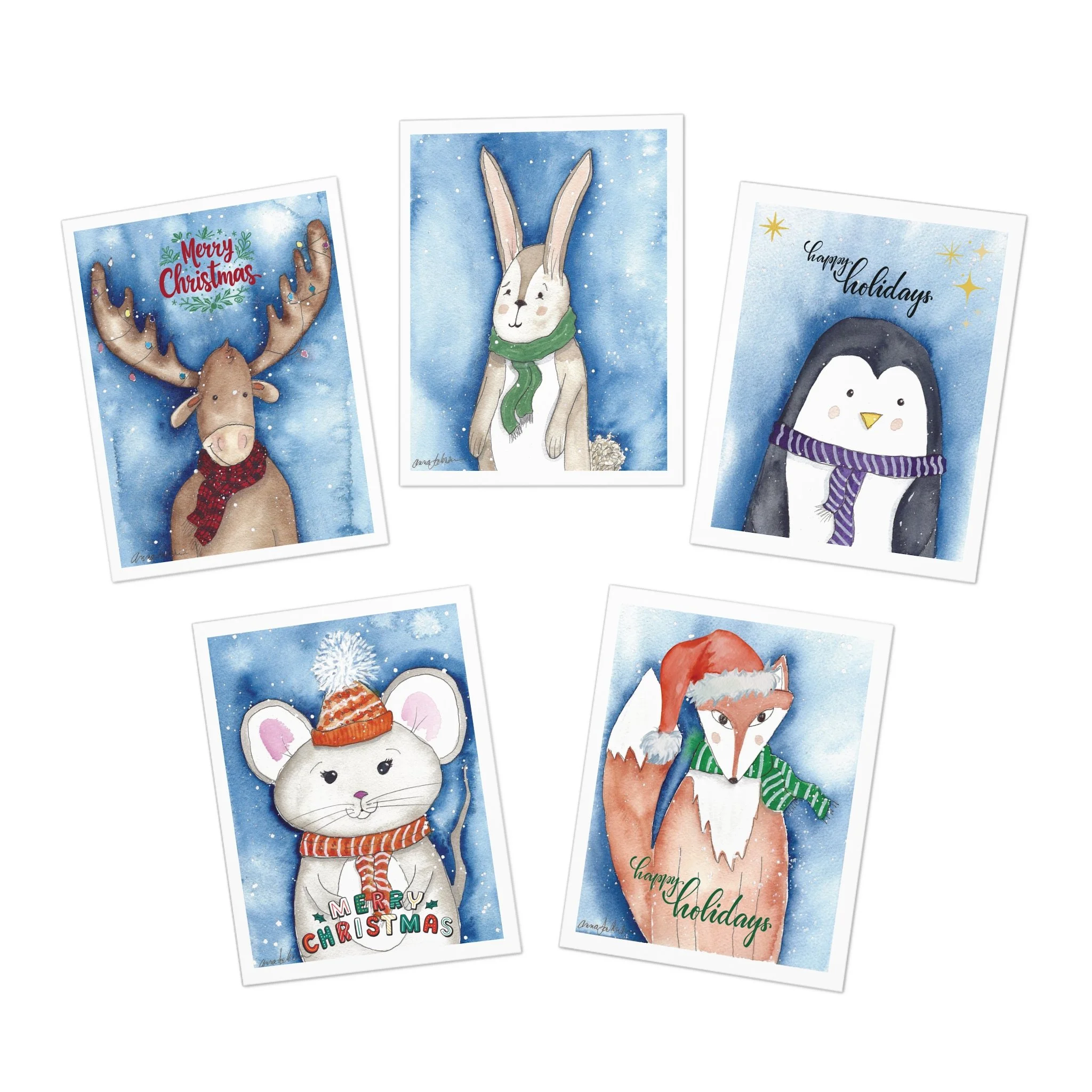 Celebrate the holidays with these cute winter animals. Add a touch of charm and warmth to your holiday greetings. Vibrant colors. Comes with matching envelopes. Printed on high-quality uncoated paper. Perfect size for holiday greetings.