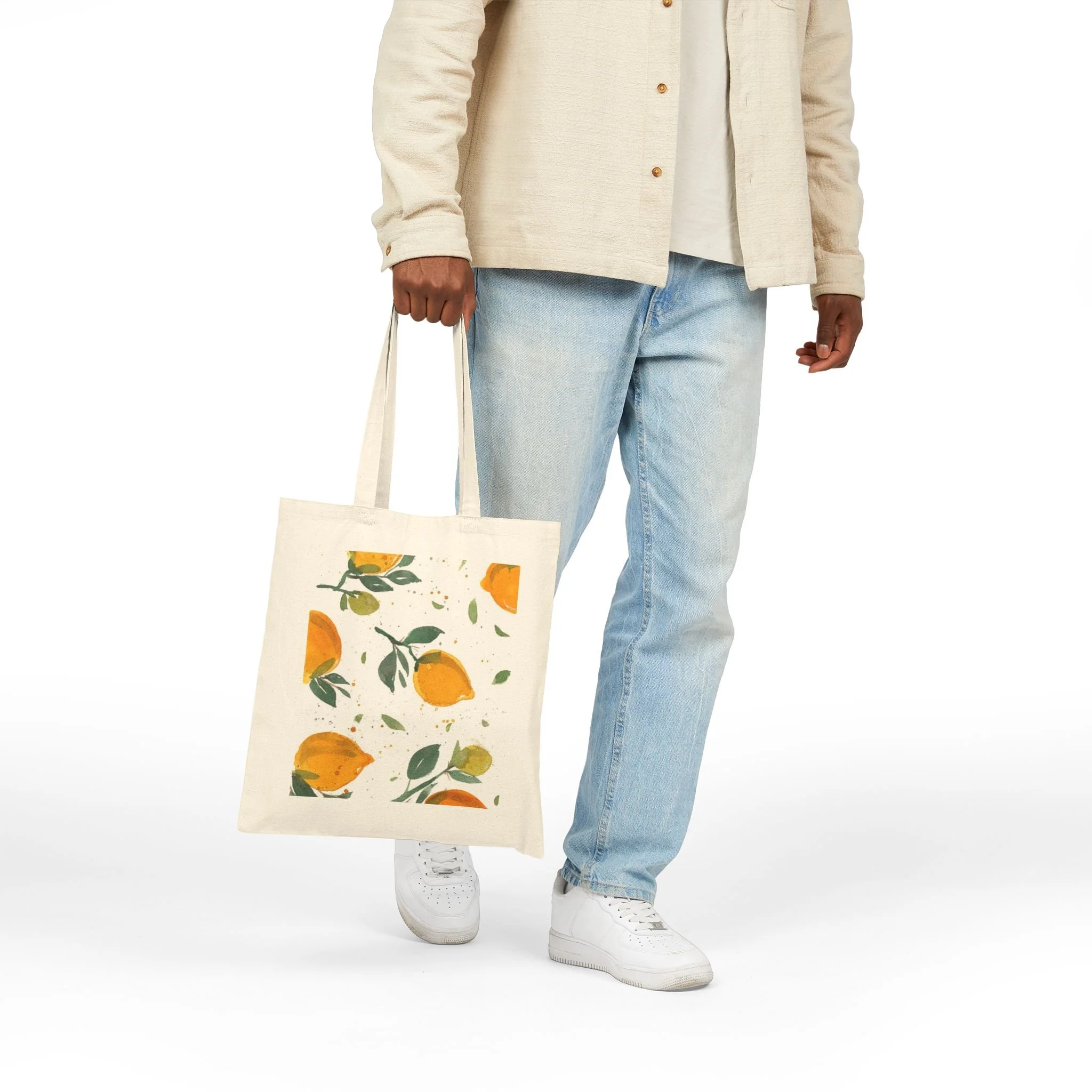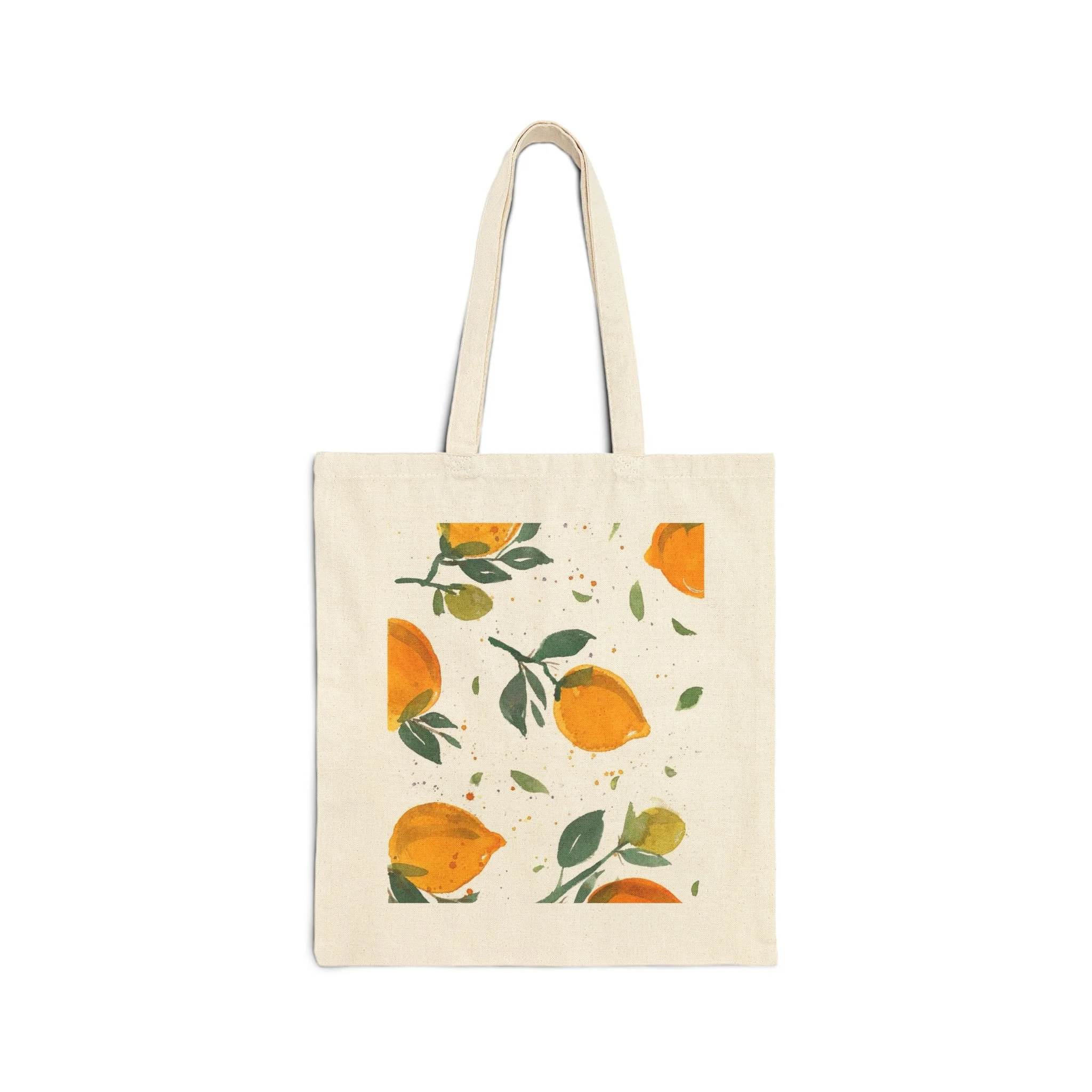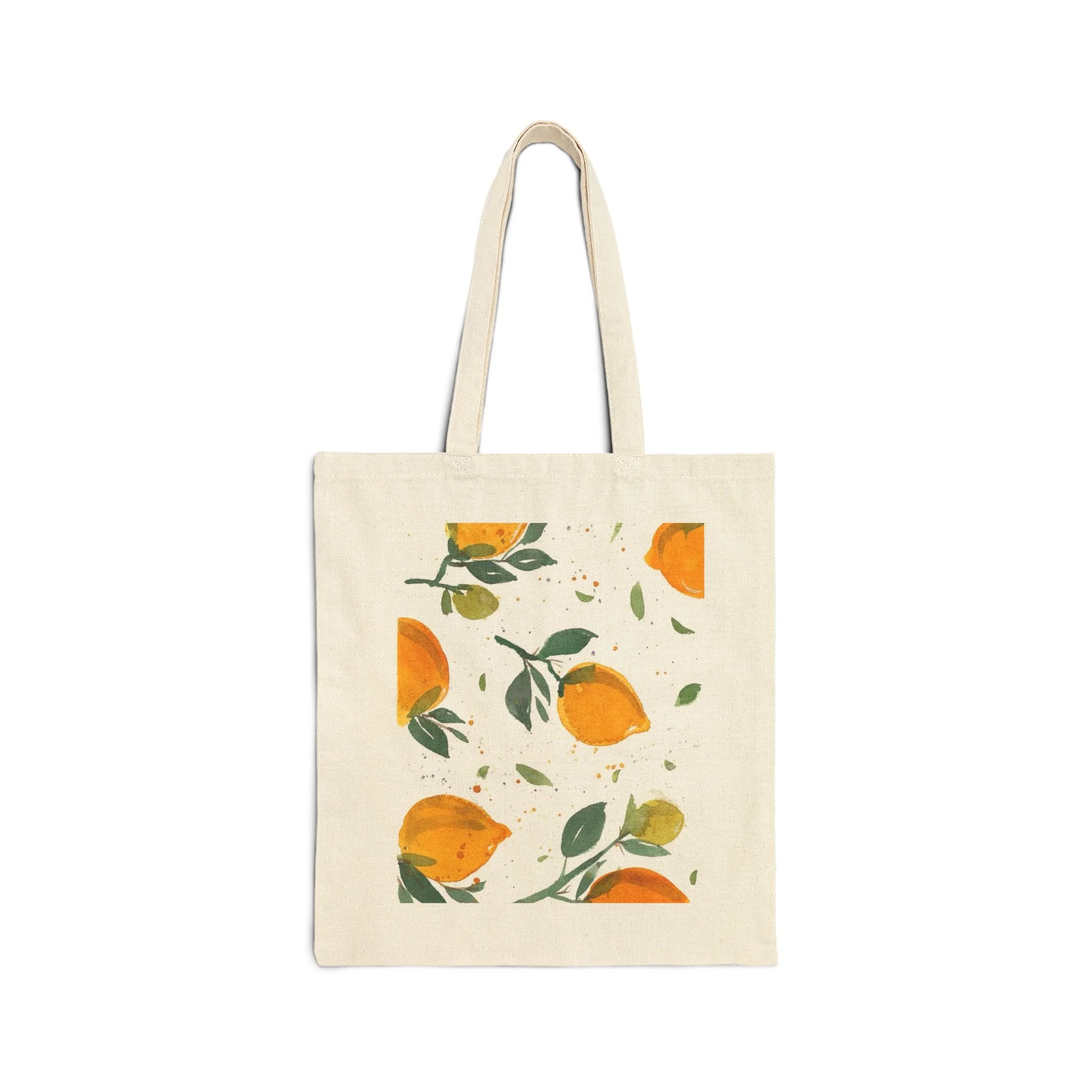 This double sided lemon tote bag is 100% cotton bag, 15" x 16". It's perfect for everyday. While the canvas material showcases this original artwork in vibrant colors, it's also durable and will last for years. The bag features 20" handles (made from the same canvas), making it easy to carry even with a week's worth of shopping.