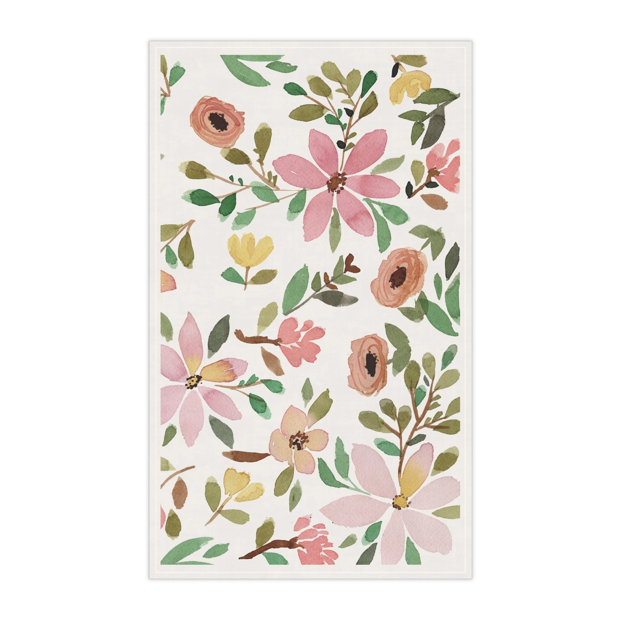 Bring the beauty of pink florals into your kitchen with these vibrant and durable tea towels. Ideal for those who appreciate watercolor art and want to elevate their kitchen decor. Great for gifting on birthdays, Mother's Day, or housewarming parties. Hemmed edges for durability. Vibrant colors with crisp prints. 100% cotton twill options. Available in one size: 18" × 30". Care instructions, machine wash: cold (max 30C or 90F), gentle cycle, mild detergent. Do not bleach. Tumble dry: low heat