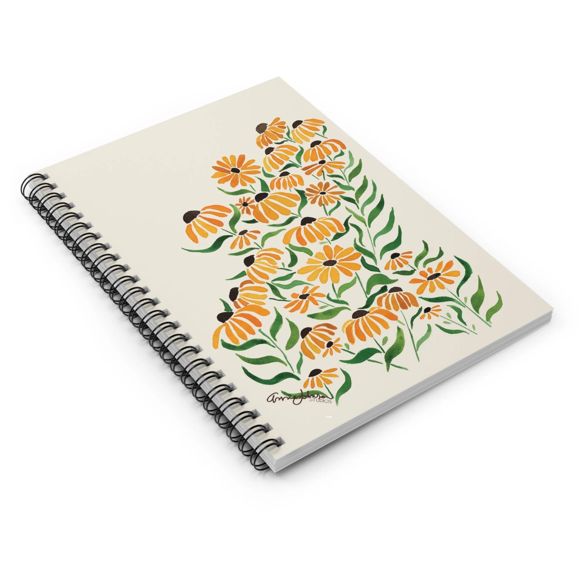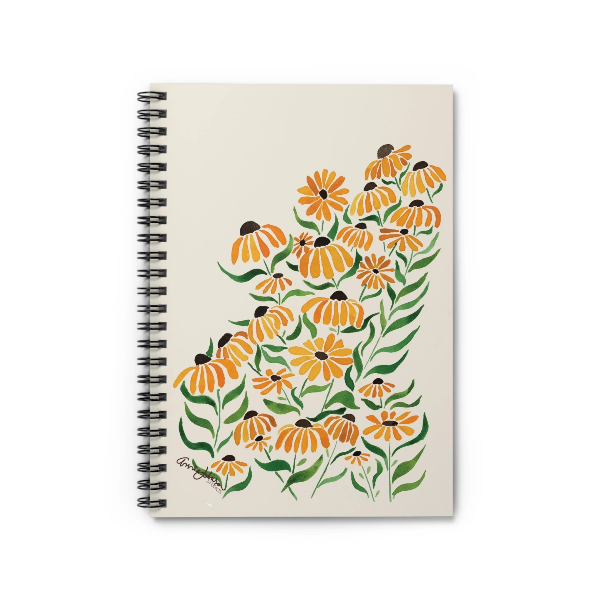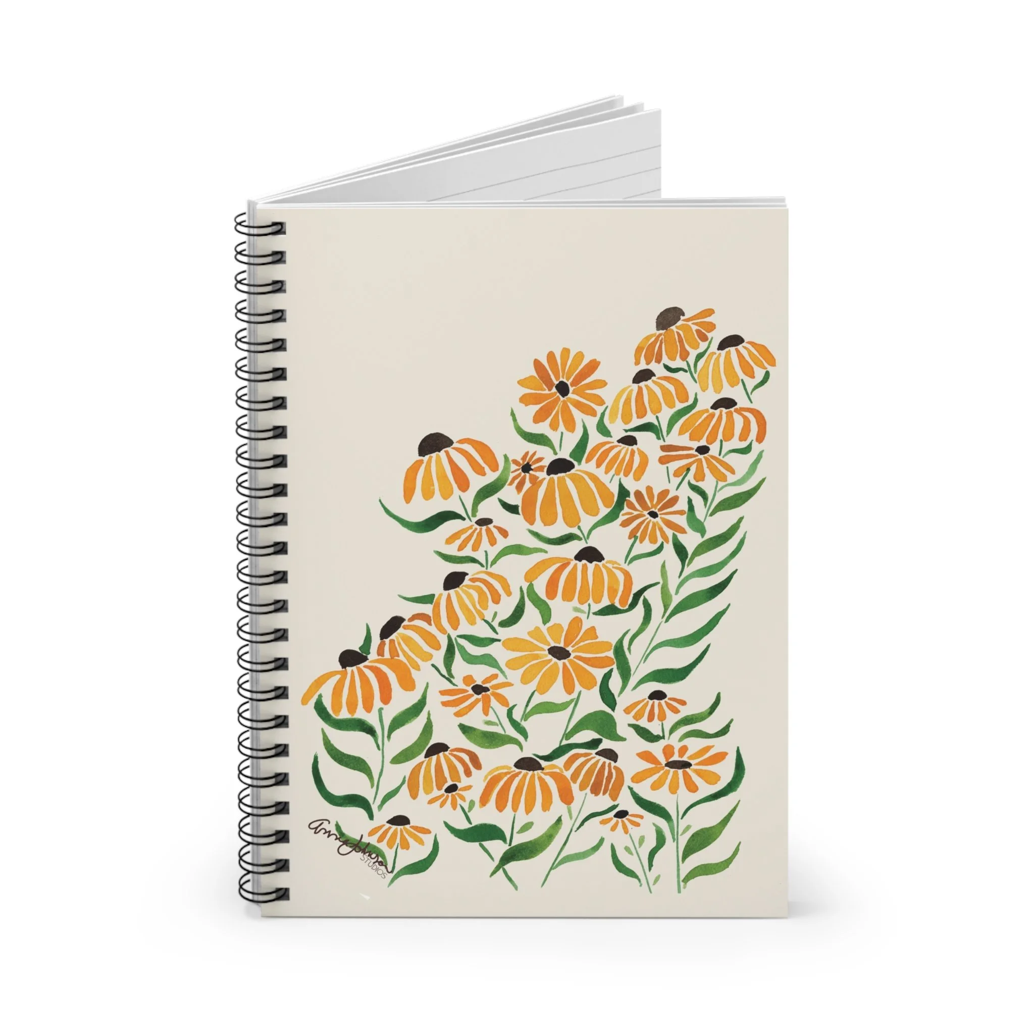 This yellow daisy spiral notebook radiates a sunny and cheerful vibe, perfect for jotting down notes, journaling, or sketching. Ideal for students, artists, or nature lovers, this notebook is relevant for springtime, birthdays, or back-to-school shopping. Fancy look metal spiral binding. Document pocket for added storage. 100% paper material. 6" x 8" with 118 ruled line pages